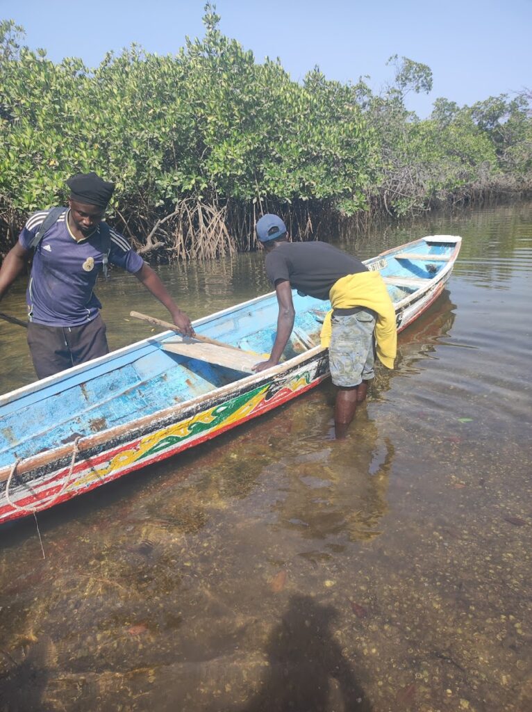 Passage dans le bolongs de Moundé pour arriver de l’autre côté afin de pique-niquer les pieds dans l’eau , randonner dans la mangrove , se baigner, se détendre et d’autres activités à découvrir.